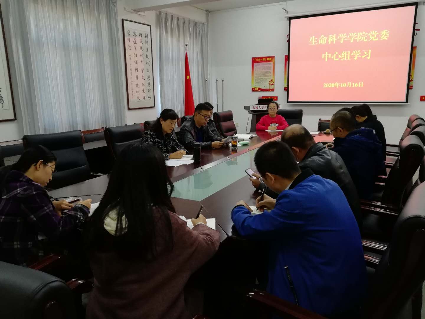 10月16日下午在博雅楼212会议室,生命科学学院党委中心组召开(扩大)学习会,集中专题学习习近平总书记近期重要讲话精神。学院党委中心组全体成员、各支部书记、全体辅导员参加了学习会,学院党委副书记(主持党委工作)富中华主持学习。