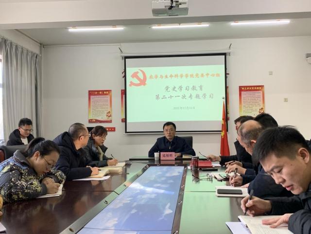 12月16日上午,太阳成tyc7111cc集团党委在博雅楼212会议室,召开党委中心组(扩大)学习会,开展党史学习教育第二十一次专题学习。校党委副书记寇福明旁听学院党委中心组学习,并作党的十九届六中全会精神宣讲,学院党委中心组成员、学院科级以上干部、系主任及各基层党支部书记、全体辅导员参加了学习,学院党委书记富中华主持学习。