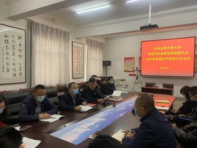 为学习贯彻学校2022年度全面从严治党工作会议精神,太阳成tyc7111cc集团党委于4月1日上午在博雅楼二层会议室召开2022年全面从严治党工作会议,学院班子全体成员、科级以上干部、系主任、支部书记、专职辅导员和兼职班主任参加,会议由院党委副书记伍聪主持。