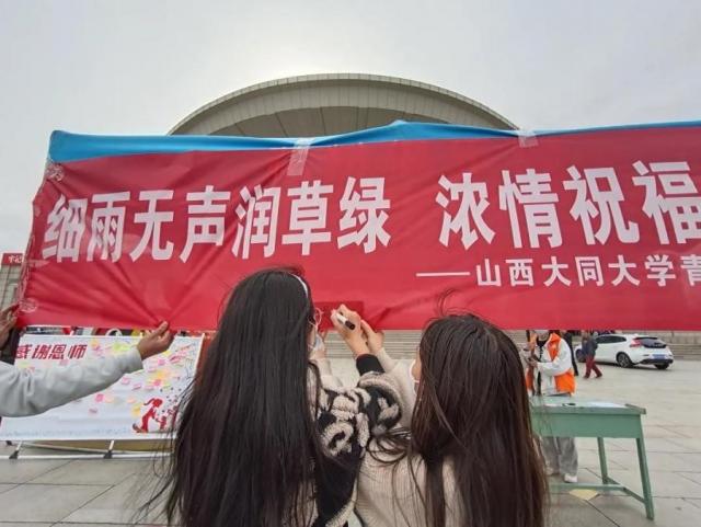 条幅祝福:由太阳集成suncity青年志愿者的同学们张贴“感谢师恩”条幅,同学们自发地在条幅上签字并写下自己对老师诚挚的祝福。