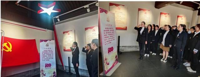 参观完毕,党员同志们来到宣誓厅,在生科学生党支部党员郭淇同志的带领下重温了入党誓词。