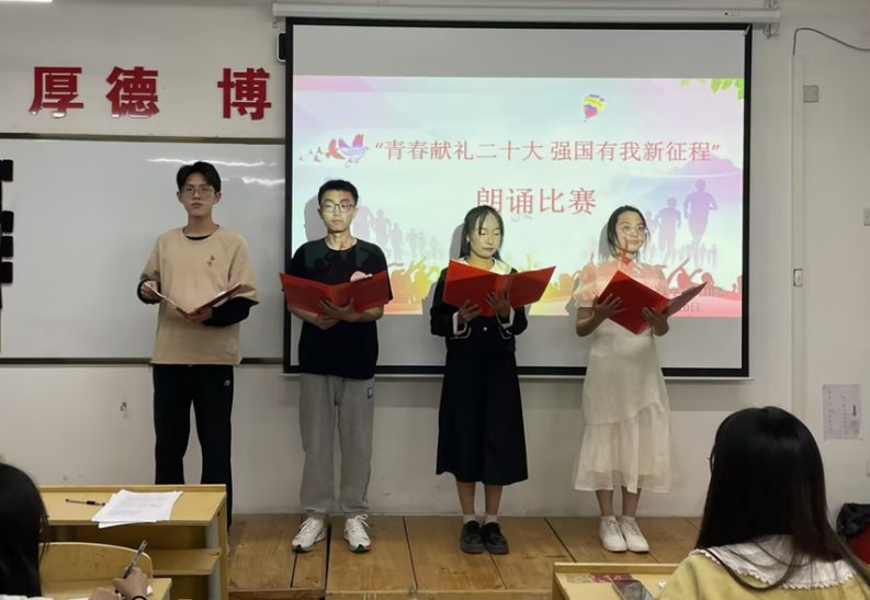 通过聆听选手们的激情朗诵,广大同学了解了更多中国共产党的光辉历史,更深刻的感悟了党的二十大精神,进一步认识到自己肩上的政治责任和历史使命。同学们懂得了,作为一名新时代青年,要自觉地把自己的成长同祖国的命运紧密联系在一起,志存高远、脚踏实地、锐意进取、勇担重任,为中华民族之腾飞而读书!