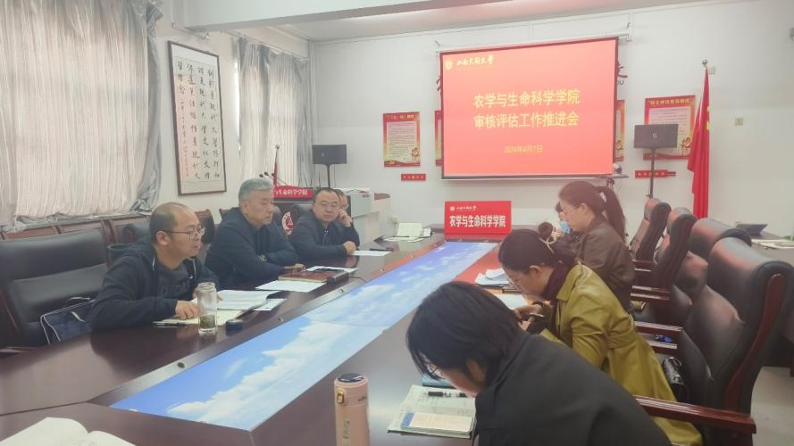 4月7日下午,农学与生命科学学院召开本科教育教学审核评估工作推进会。会议由院长白云峰主持,学院党委书记富中华出席会议,学院领导班子、审核评估全体工作人员参加了本次会议。