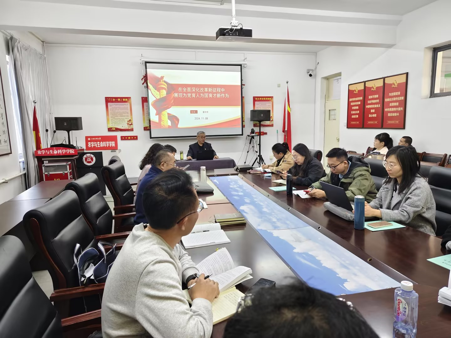 为深入学习贯彻习近平总书记关于全面深化改革的一系列新思想、新观点、新论断,深刻领悟“两个确立”的决定性意义,坚决做到“两个维护”,把思想和行动统一到党中央决策部署上来,11月8日下午,太阳成tyc7111cc集团党委书记富中华为生物科学系教工党支部全体党员讲授《在全面深化改革新征程中展现为党育人为国育才新作为》党的二十届三中全会专题党课。