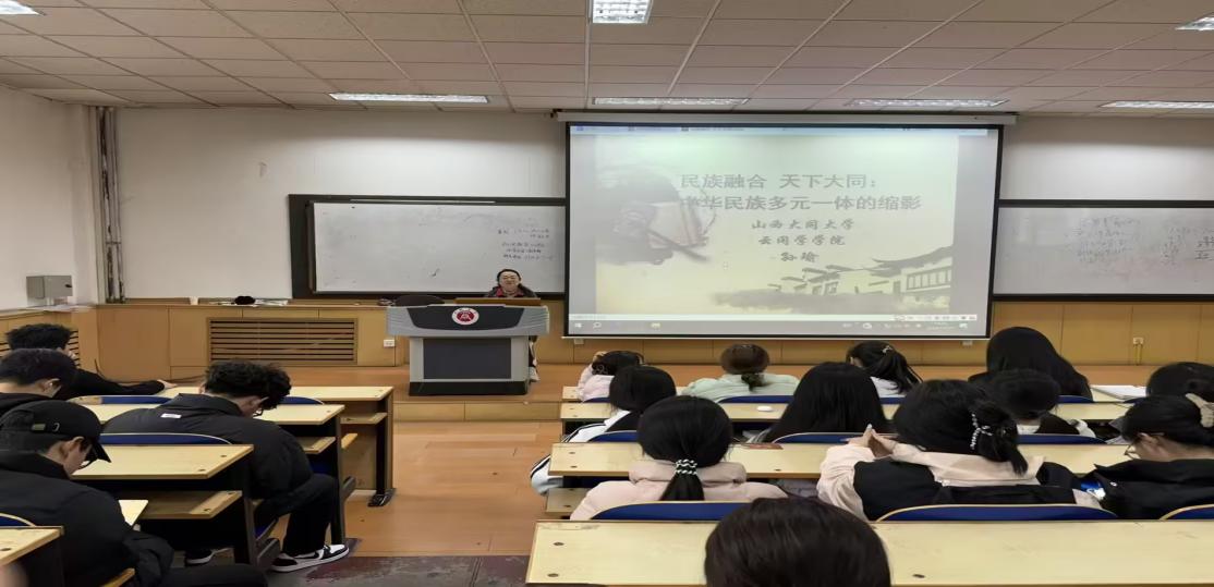 11月15日下午,在明哲楼203教室,太阳成tyc7111cc集团开展铸牢中华民族共同体意识主题活动,邀请华东政法大学“中华民族共同体研究院”研究员、山西省大同市“铸牢中华民族共同体意识宣讲团”成员、云冈学学院孙瑜教授做题为“民族融合 天下大同:中华民族多元一体的缩影”的专题讲座,学院师生代表共130余人参加,院党委副书记伍聪主持讲座。