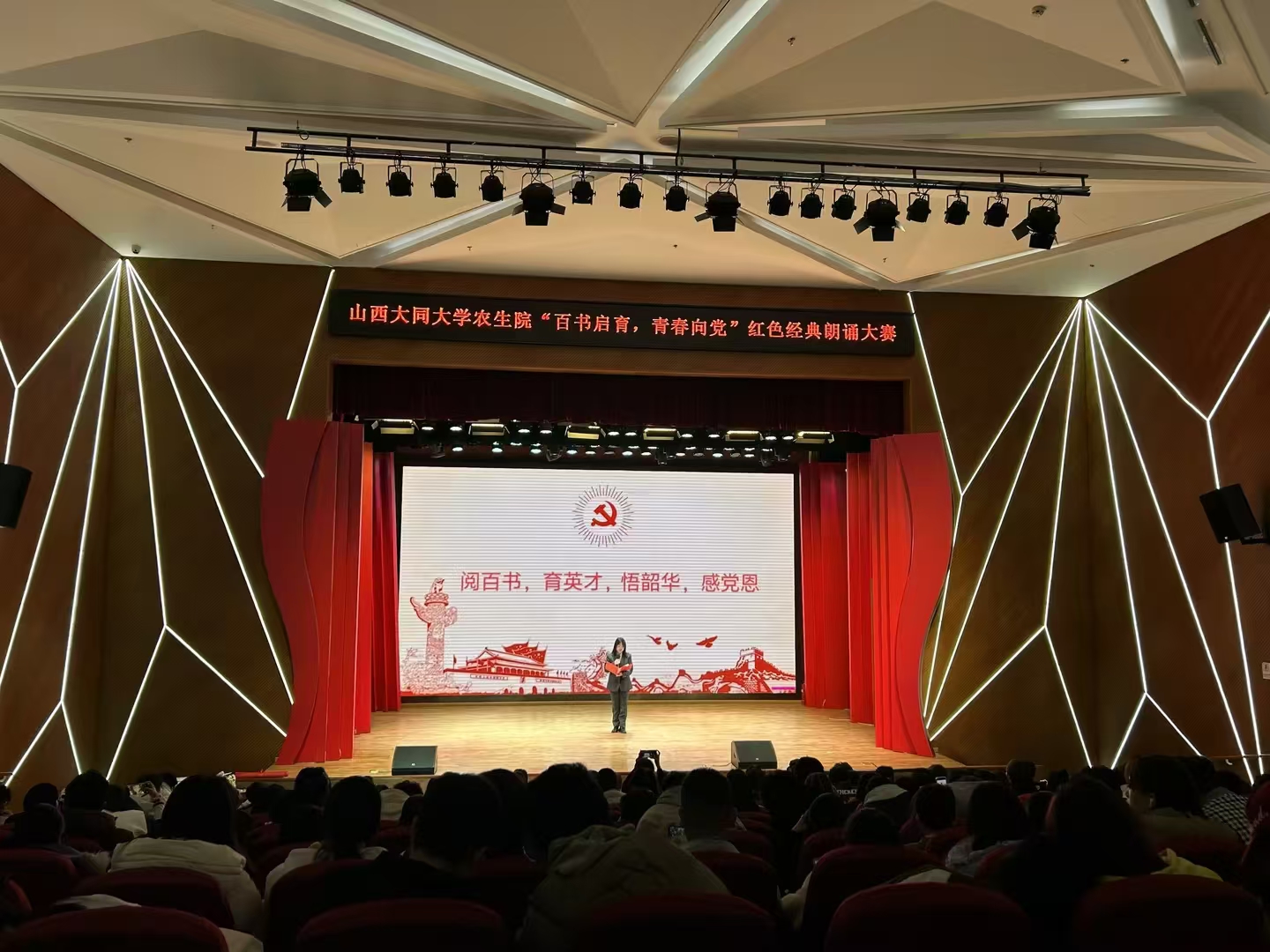 在研学活动结束后,“百书启育,青春向党”朗诵大赛在大同市图书馆演播厅如期举行。比赛选手们声情地朗诵了《钢铁是怎样炼成的》、《红船,从南湖启航》、《青春中国》等红色经典作品,用真挚的情感和铿锵有力的声音,向观众展示了学院阅读经典的阶段性成果。