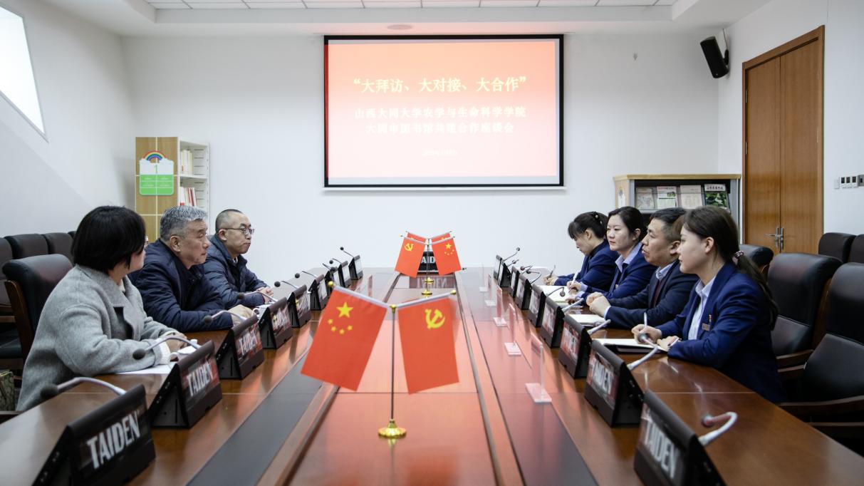 市图馆长陈来义详细介绍了大同市图书馆的基本情况和重点业务。学院党委书记富中华介绍了学院总体情况,希望结合学院学科特色和专业优势,在科普推广、科普基地建设、学生志愿服务等方面与大同市图书馆进一步加强合作。会上,双方就今后合作内容,具体实施方式和联合开展科普教育活动的规划展开深入交流讨论。
