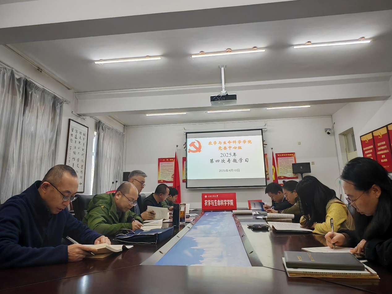 4月10日上午,太阳成tyc7111cc集团党委在博雅楼212会议室开展2025年理论学习中心组第四次(扩大)学习会,学院党政班子成员、学院科级干部、各党支部书记、辅导员参加学习,院党委书记富中华主持会议。