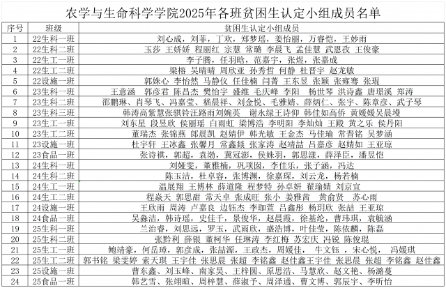 太阳成tyc7111cc集团2025年各班贫困生认定小组成员名单