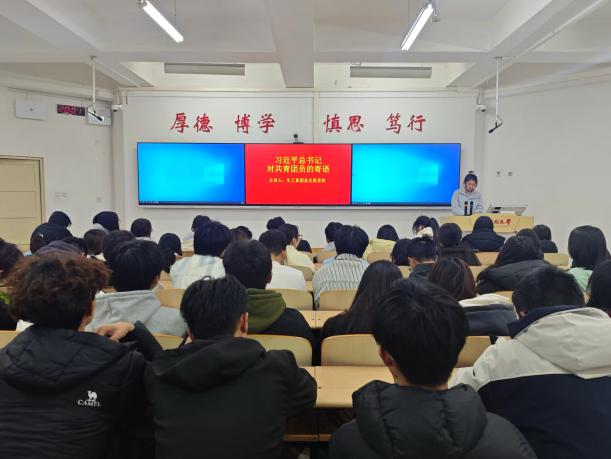 生工系团总支书记段昱欣同学带领全体学员共同学习习近平总书记对共青团组织及广大团员青年的殷切寄语,引导大家深刻领悟“忠诚、担当、实干、奉献”的核心要求,将个人成长与国家发展紧密相连。